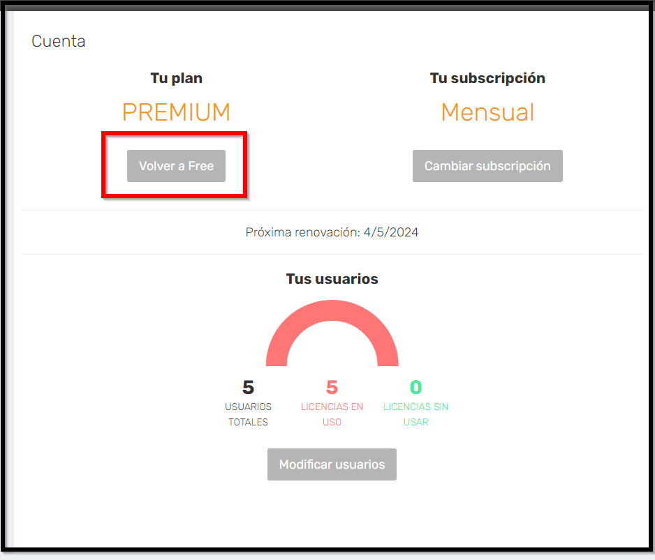 Cómo volver al plan Free desde Premium
