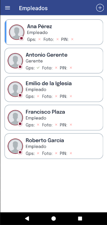 Empleado : Es el rol que tiene acceso a un menor número de funciones. Solamente puede fichar.
