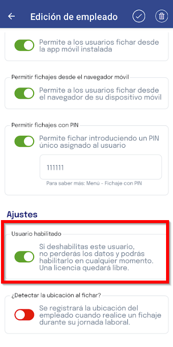 Deshabilitar o habilitar empleados desde de la app